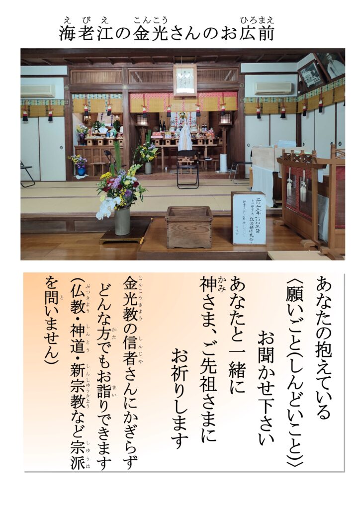 金光教の教会は、宗派や信仰を問わず、どなたでもお参りできる場所です。